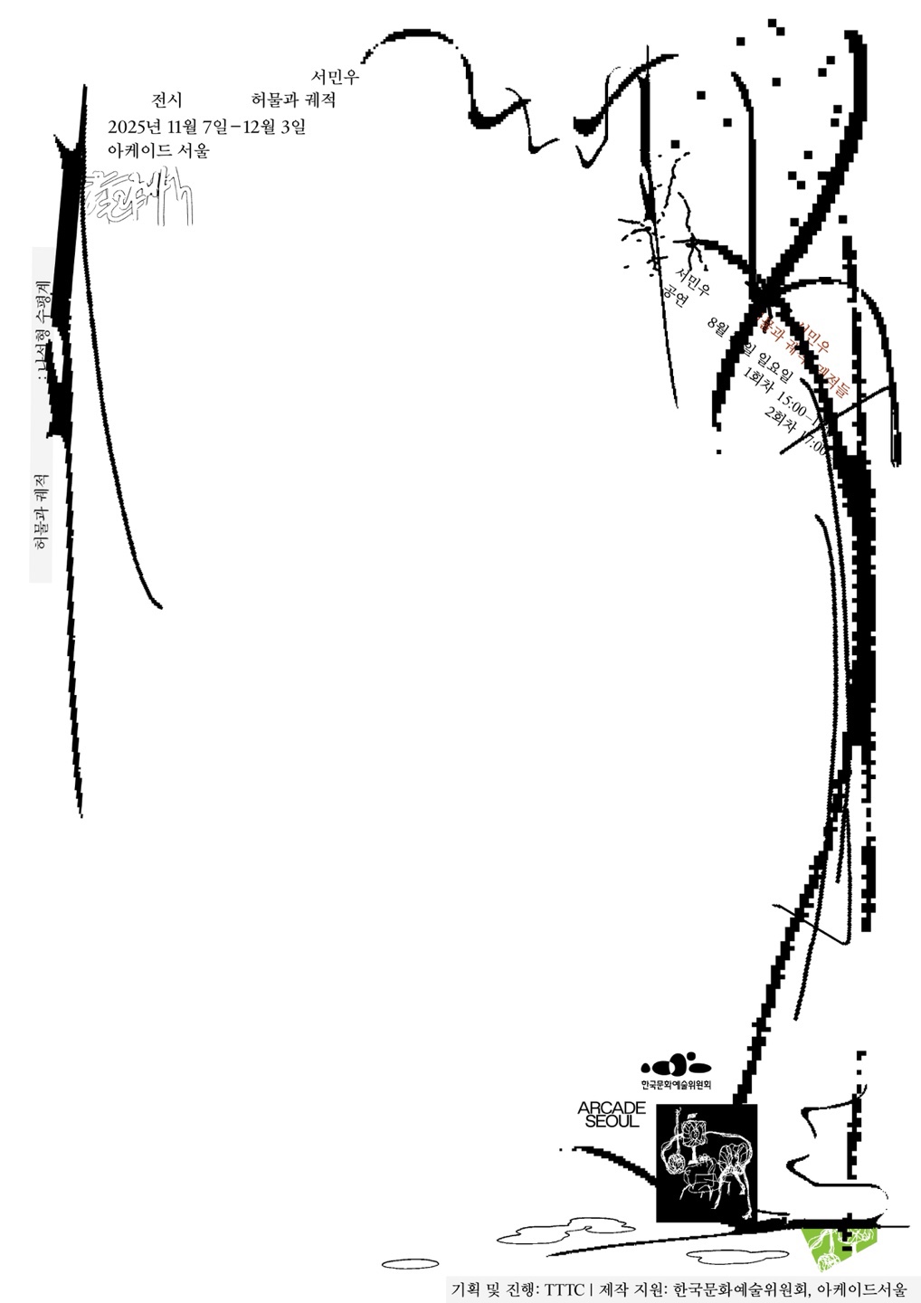 아케이드서울에서 서민우 작가의 개인전 《허물과 궤적》이 11월 8일부터 12월 3일까지 개최된다. 이번 전시는 5월 음반, 8월 공연, 11월 전시로 이어지는 장기 프로젝트의 최종 장으로, 소리를 물질적 사건으로 다루어 ‘청취의 조건’을 다시 구성하는 실험적 작업을 선보인다.