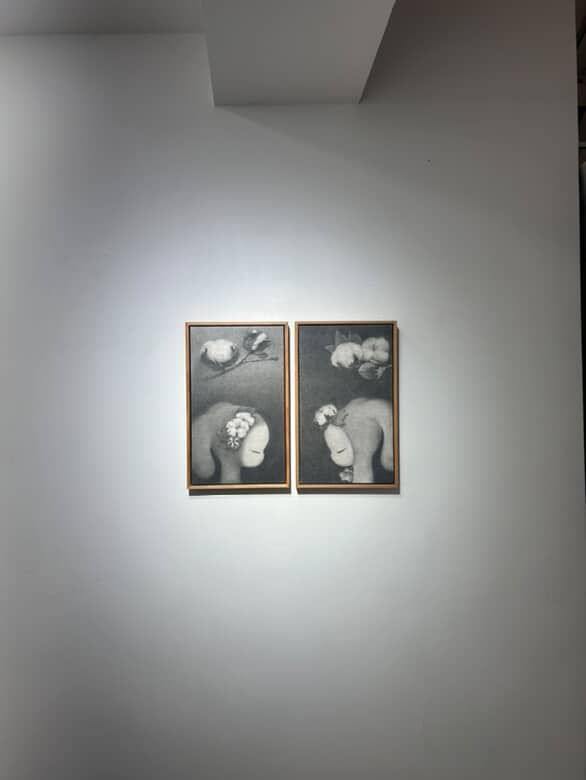 또한 이번 전시의 또 다른 축인 ‘리스닝 버니 시리즈’는 ‘연약한 존재인 아이’와의 관계에서 시작되었다. 작가는 아이를 보호하려는 마음으로 작업하던 중, 오히려 그 아이가 자신을 지지하고 보호해 주고 있었다는 사실을 깨닫는다. 이 경험은 그녀에게 깊은 위로와 감사의 순간으로 다가왔으며, 작품 속 버니는 ‘우리’를 연결하는 상징적 존재로 확장된다.