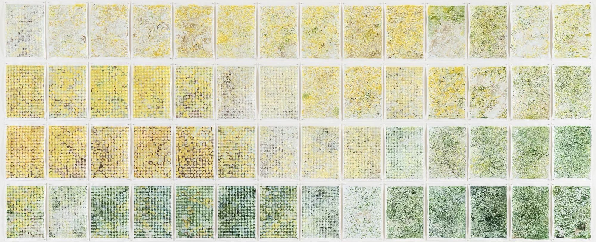 〈개나리 동산〉, 2021, 모눈종이에 채색, 156x378cm(56pcs)