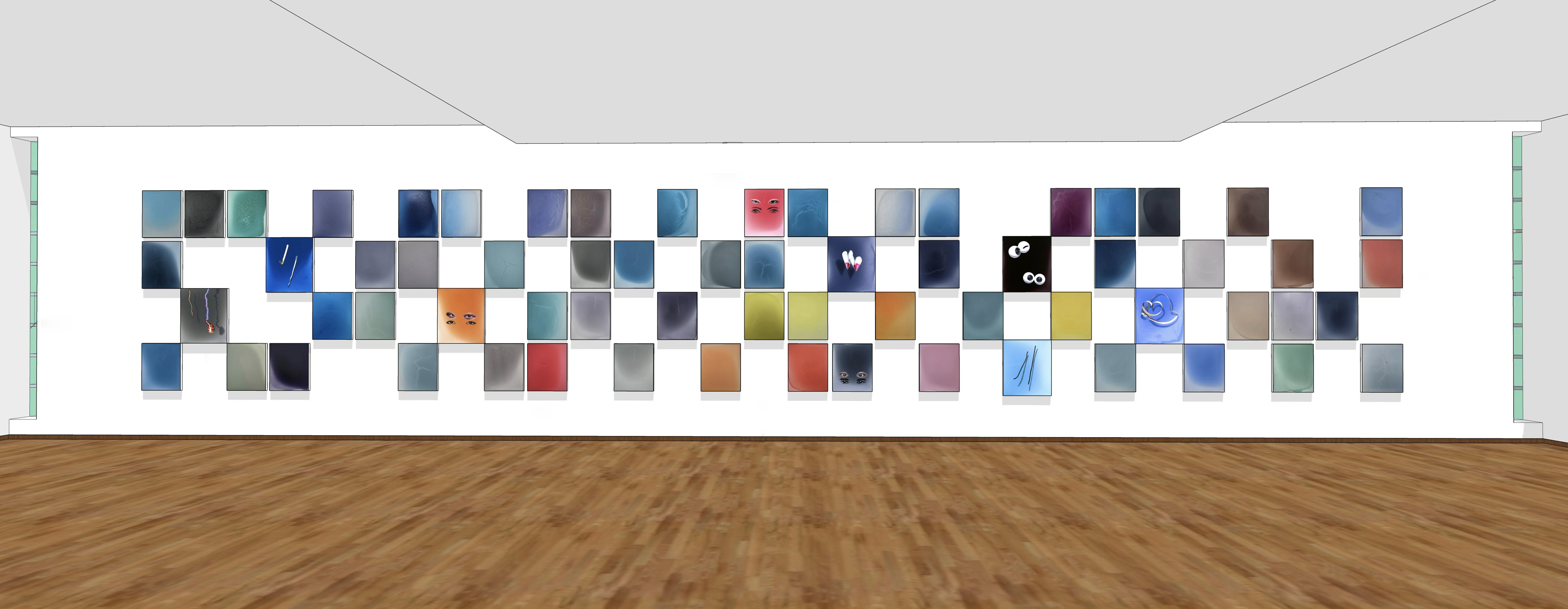 박형진은 변화하는 자연의 색을 주관적 감각과 경험에 따라 기록하며, 일상의 풍경을 시간의 흐름 속에 투영한다. ‘색점 연작’은 자연의 상태를 시각적 지표로 환원하는 동시에, 감각을 구조화된 그리드 안에서 기록하려는 시도다. 이는 전통적인 투영의 개념을 넘어 사회적·생태적 감각을 포함하는 확장된 투영 방식으로 읽힌다.